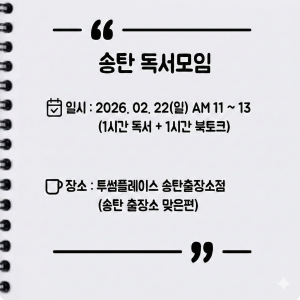 ・1시간 동안 각자 가져온 책을 읽고, 1시간 동안 자유롭게 북 토크 진행(당일 카카오톡 단톡방에 공지 예정)